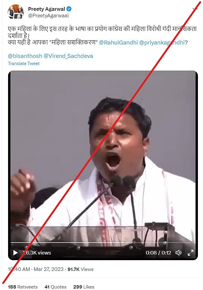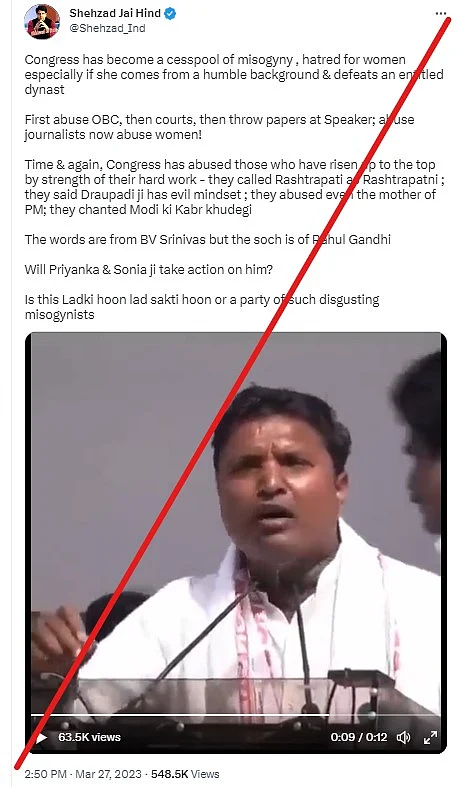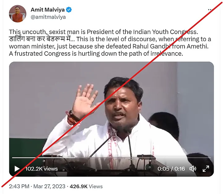 A video showing the National President of the Indian Youth Congress (IYC) Srinivas BV speaking about a 'witch' is being shared with a claim that he made this remark towards Union Minister Smriti Irani.