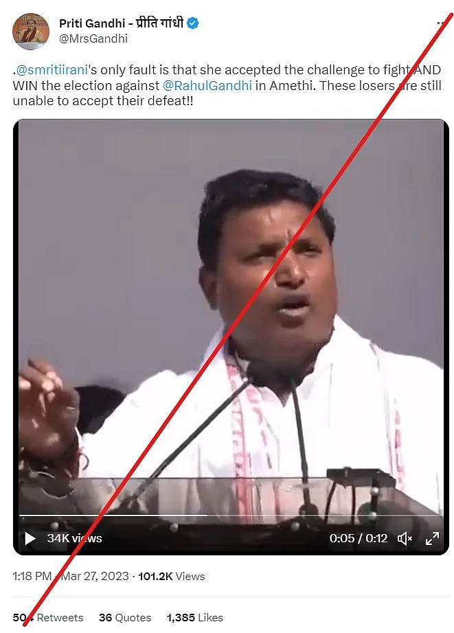 Who shared it?: Several social media users shared this claim about Srinivas BV insulting Irani, including verified social media accounts associated with the Bharatiya Janata Party ( BJP Karnataka, BJYM, Amit Malviya, Shehzad Poonawalla, Priti Gandhi, and Preety Agarwal.)