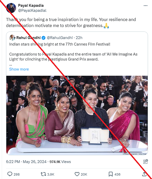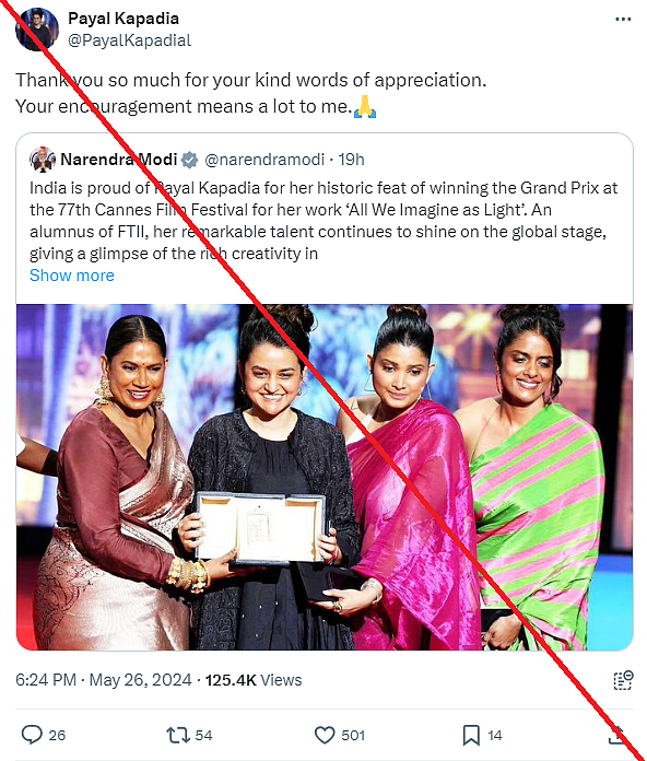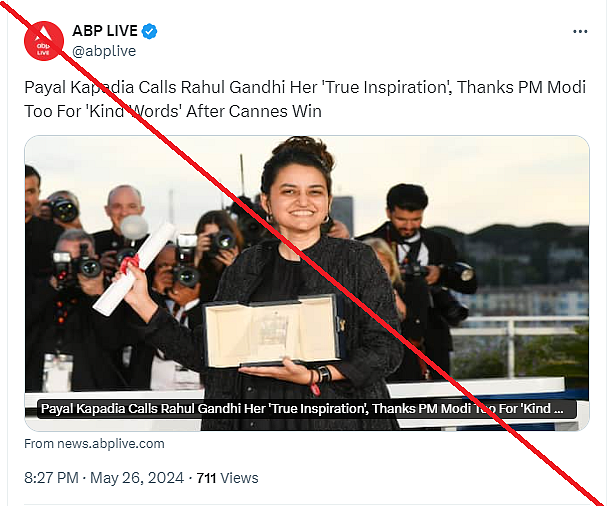 Gist of the matter: Following this, an X (formerly Twitter) handle with Kapadia's name started replying to congratulatory messages shared by several prominent accounts, such as Prime Minister Narendra Modi and Congress' Rahul Gandhi.