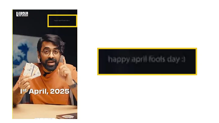 Hints in the video: On going through the entire clip, we noticed that it carried a text on the top-right side on a keyframe that said "happy april fools day."