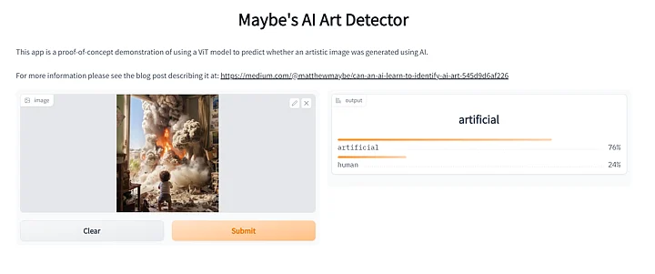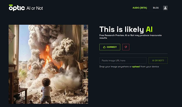 Both tools indicated that the image is AI-generated and does not show a real incident.