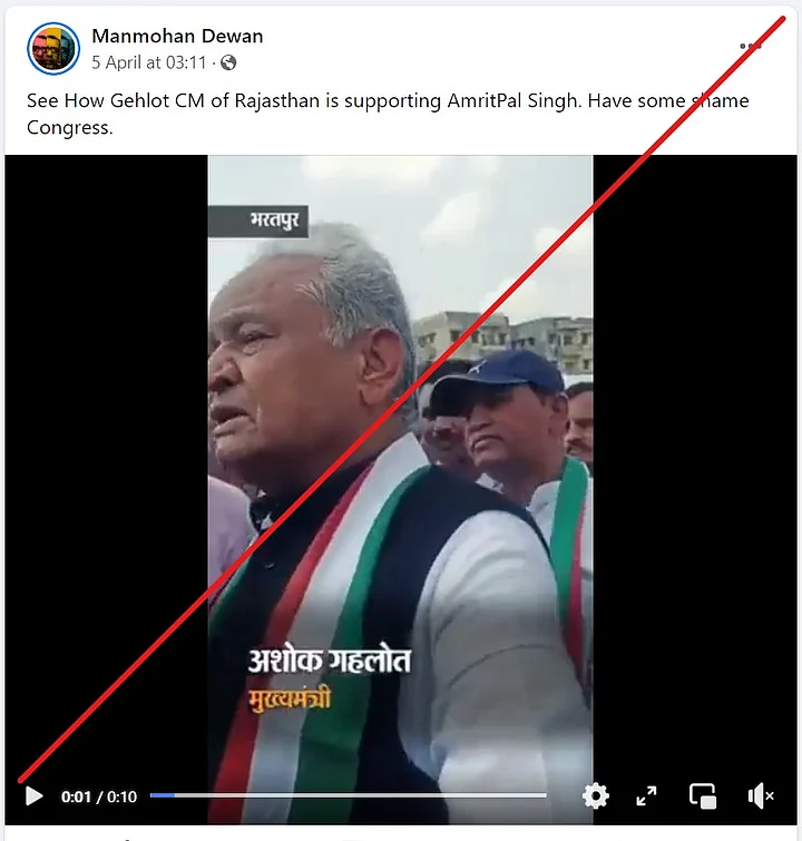A video showing Rajasthan Chief Minister Ashok Gehlot talking about Waris Punjab De (WPD) chief Amritpal Singh is going viral with a claim that Gehlot is supporting Singh's separatist Khalistan movement.