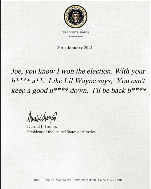 There is absolutely no evidence to prove that this letter is the original letter that Trump left for his successor, Biden, before leaving the White House.