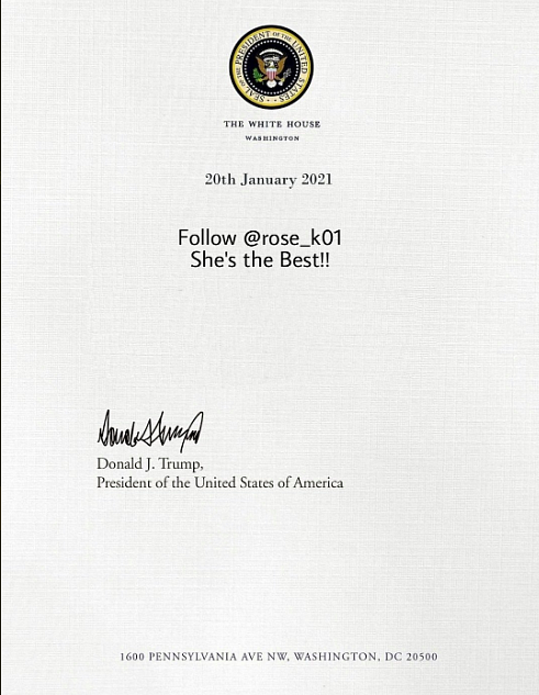 The aforementioned letter is being massively circulated on Twitter and Facebook. It seems to be signed by Donald Trump with a seal of the President of the United States at the top.