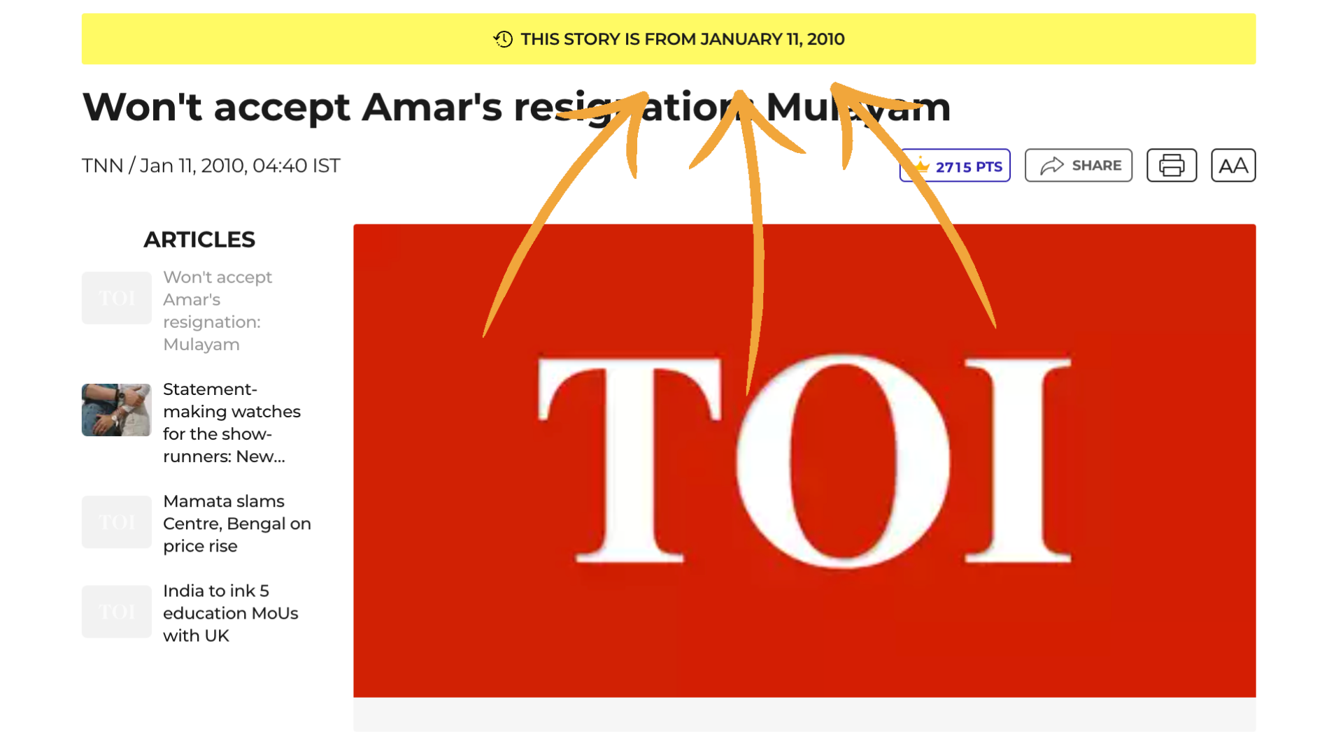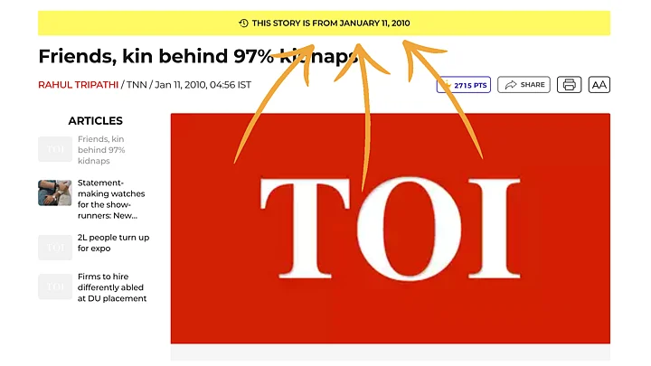 A look at the other headlines: We saw other headlines regarding kidnappings and the late Samajwadi Party (SP) leader Mulayam Singh Yadav as well. On looking them up, we were led to The Times of India articles published on 11 January 2010.