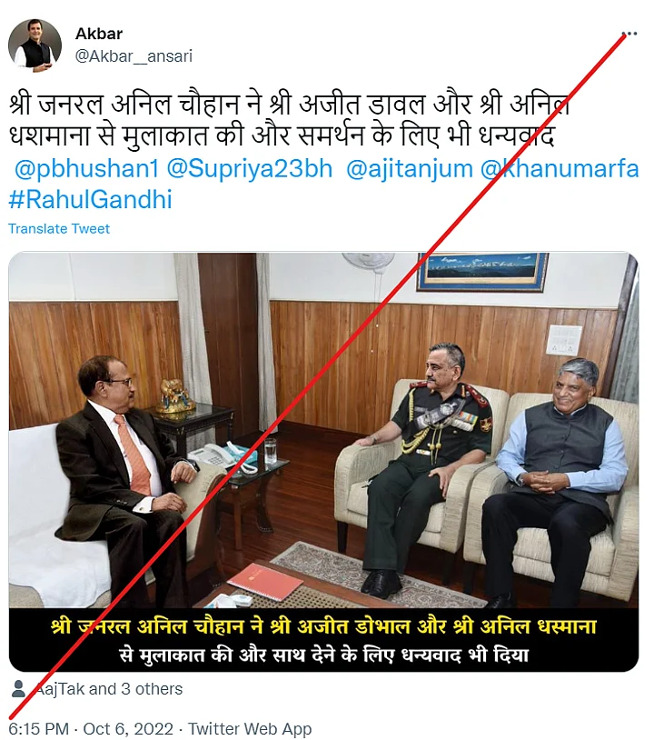 Clearly, an edited picture showing Chauhan, Doval, and Dhasmana is being shared to push the false claim.