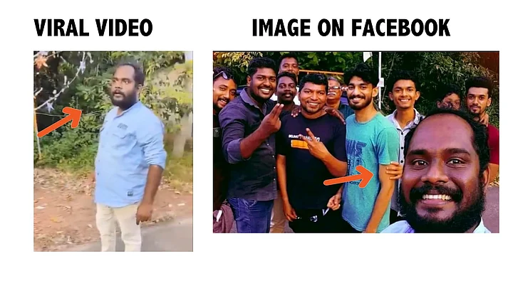 People in the viral video: When we compared the image uploaded on Sujith's profile to the keyframes of the viral video, we found some people who were dressed in identical clothes.