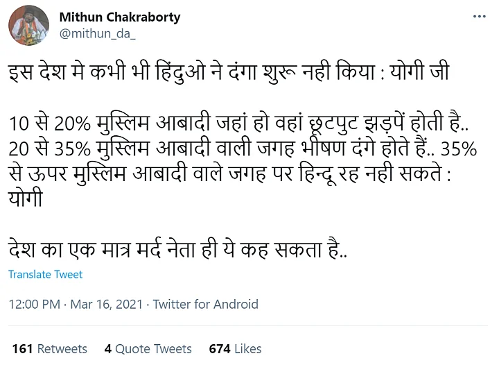Evidently, fake accounts of actor-turned-politician Mithun Chakraborty have cropped up ahead of the West Bengal Assembly elections. These accounts are not only becoming breeding grounds of misinformation but are also actively spreading hate against one community.