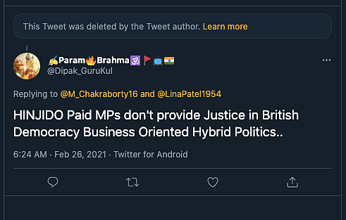 The account was also responsible for spreading misinformation on climate activist Disha Ravi who was recently granted bail for her role in the controversial ‘toolkit,’ in a bid to malign her character.