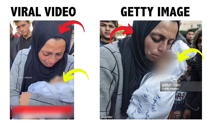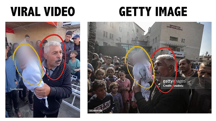 Conclusion: Visuals showing a dead baby killed by the Israeli bombing is being falsely shared as Palestinians holding a "plastic doll".