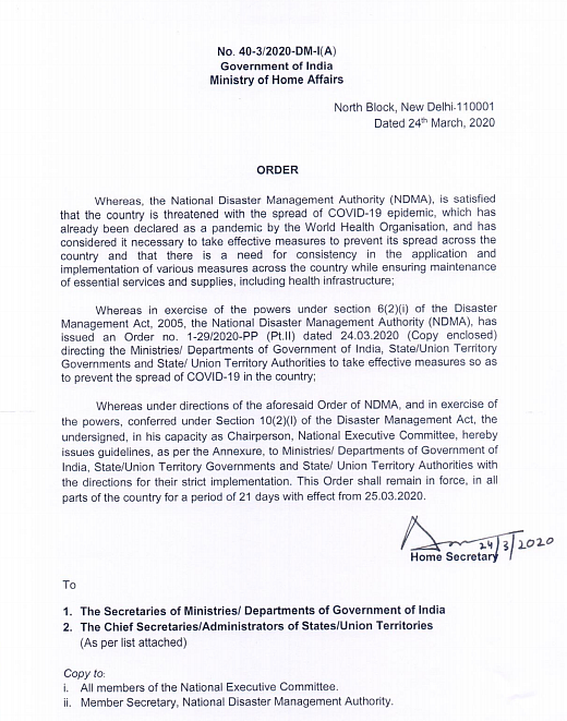 Also, the central government stated on 24 March itself – when the 21-day lockdown was announced – that the Disaster Management Act was being invoked to deal with the coronavirus pandemic.