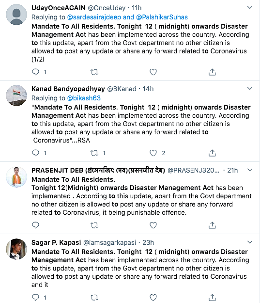 As per the Disaster Management Act, there is no provision that mentions that apart from government departments, no other citizen can be allowed to talk, update or share any news related to a disaster.