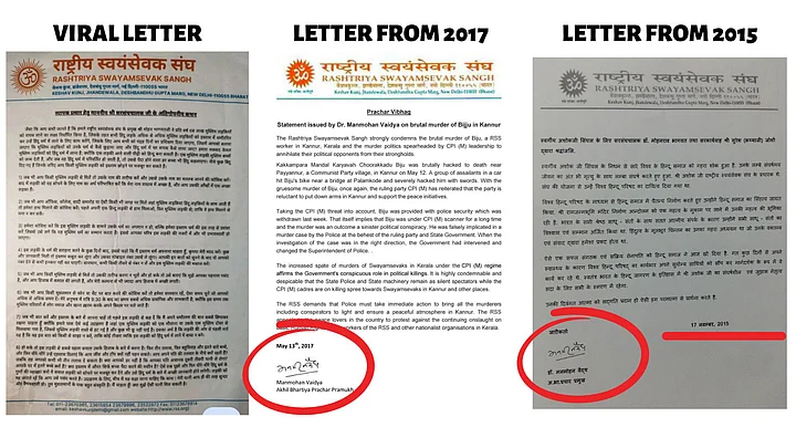What's also worth mentioning is that the older letters are both undersigned and also carry a date. But the viral one is undated and has no signatures from an RSS leader.