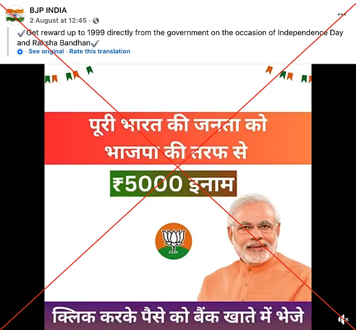 A post on social media containing an external link has gone viral, which claims that the Bharatiya Janata Party (BJP) government, headed by Prime Minister Narendra Modi, is providing ₹5,000 cash rewards to citizens for the festival of Rakshabandhan (9 August) and Independence Day (15 August).