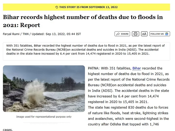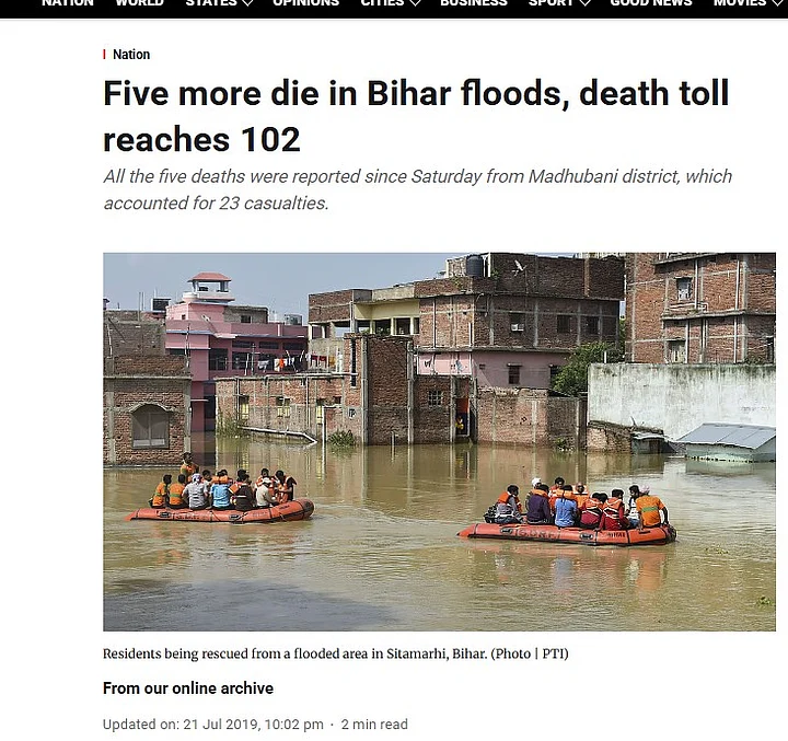 Time and again, the population in Bihar has been heavily impacted by floods. Don't believe us? Look at the news reports below that are from 2019-2025; they paint a grim picture and show how people struggle with the aftermath year after year.