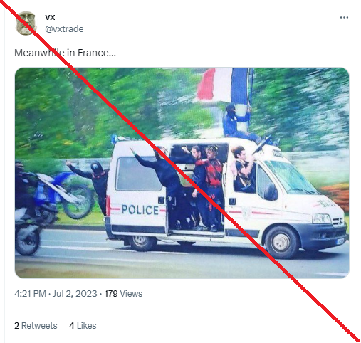 An image showing several people inside a police van is going viral on the internet with users linking it to the recent violence that has broken out in France.