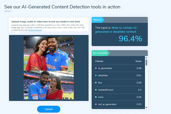 While the first tool showed over 96 percent probability, the second one gave around 99 percent chance of the images being generated using AI.