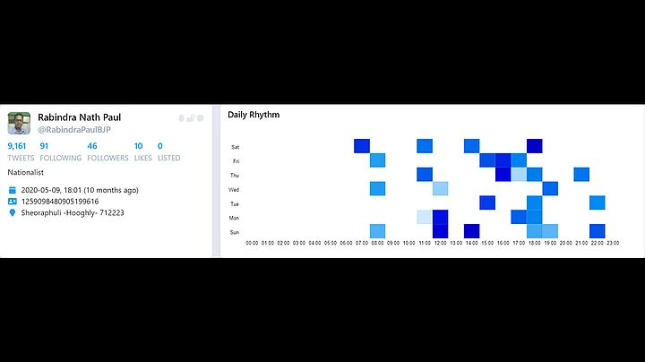 Upon analysing two of these accounts, we found that the accounts shared traits like what Strick found in his study (exhibiting bot-like behaviour). Some of the common characteristics shared by them included a particular time-period when there is high tweet activity, a high retweet to like ratio of pro-BJP content, the mention of BJP or Bharatiya Janata Party in the twitter name or description.