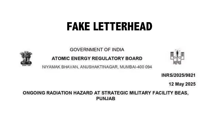 Conclusion: A fake letter is being shared to falsely claim that the AERB issued a notice about an ongoing radiation hazard at the BrahMos missile base in Beas, Punjab.