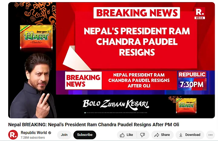 Nepal's President Ram Chandra Poudel was also a target of misinformation. Shortly after Oli's resignation, Indian news organisations such as Republic World, CNN-News 18 and Deccan Herald broke news of Poudel's alleged resignation. (Swipe)