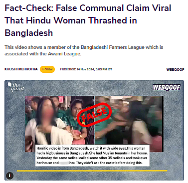 Cross-border misinformation saw a video from Pakistan, of people vandalising a temple, being shared as one from Bangladesh. The video was shared to claim that apart from Hindu people, Hindu sites were also targeted in the aftermath of the protests.