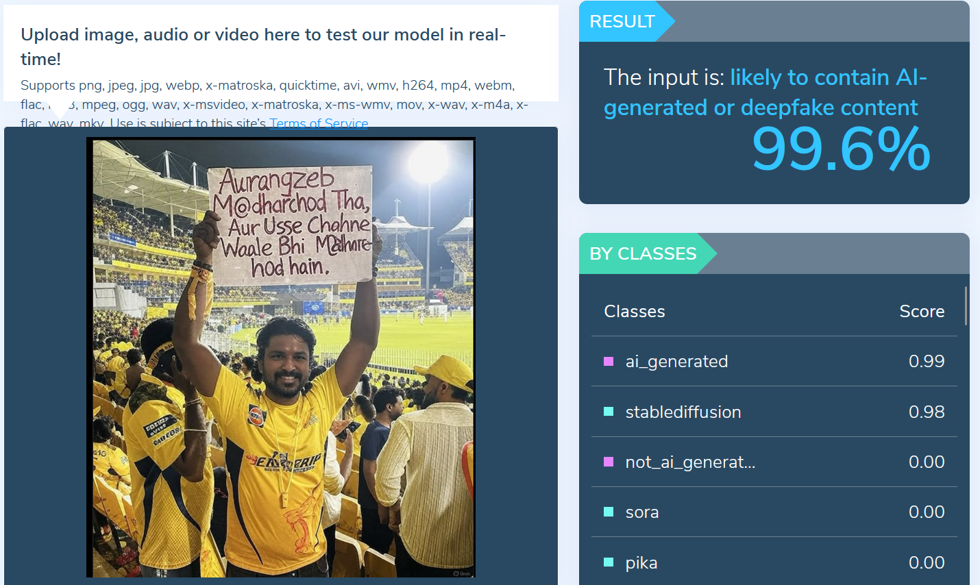 Conclusion: An image has been manipulated using AI tools to claim that a CSK fan was holding a placard which abused Mughal emperor Aurangzeb.