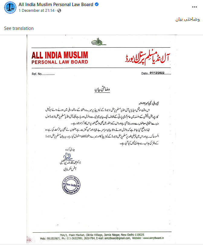 We also found a Facebook post on the AIMPLB official Facebook page that said that the body had not issued any such letter and added that it has stayed away from politics.
