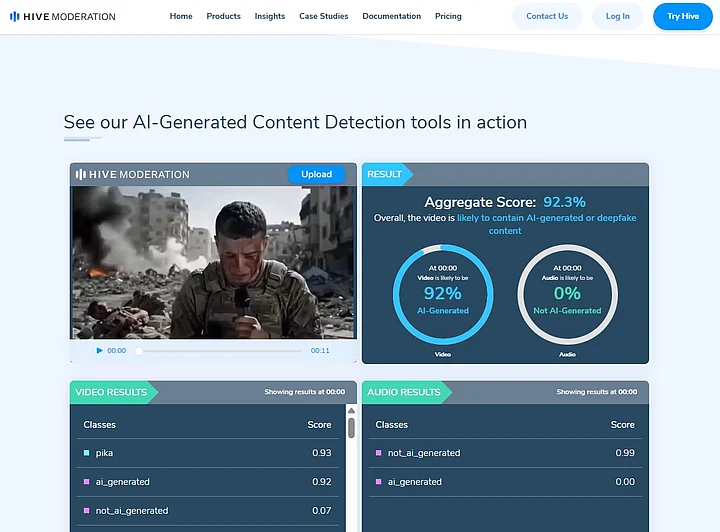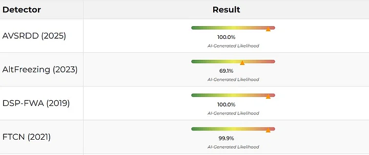 Three detectors from the second tool showed a conclusive result of the viral clip being AI-generated.
