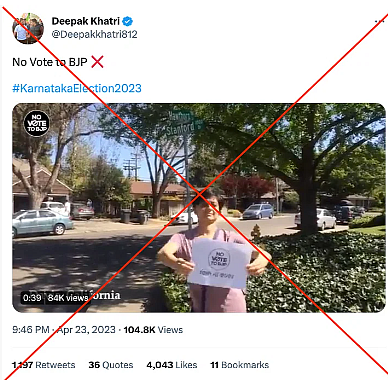 On the flip side, several accounts associated with the Congress shared a video which showed people carrying placards that read 'No Vote to BJP'.