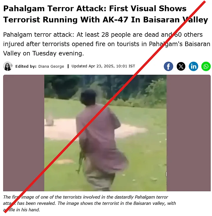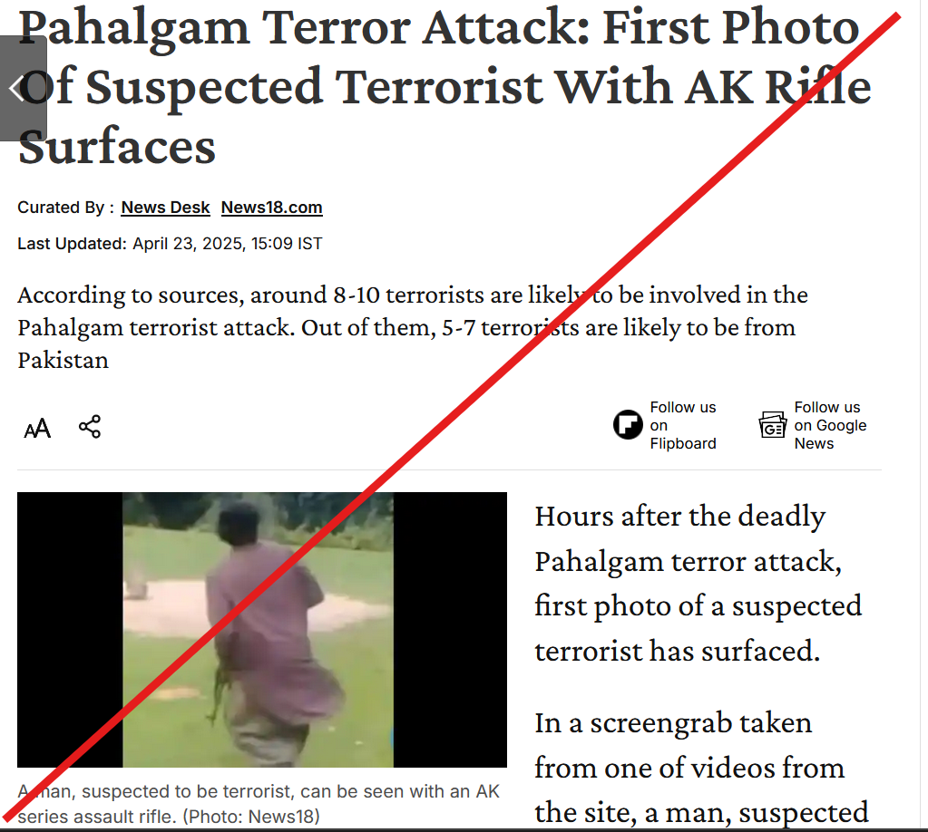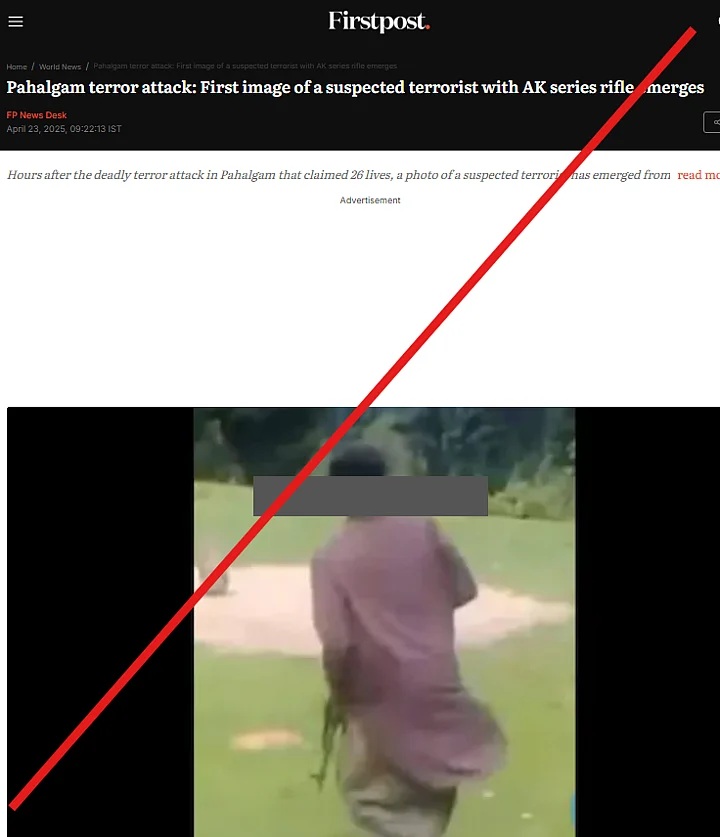 Conclusion: Media outlets shared an old image of a man running with a rifle and falsely shared as 'first footage of Pahalgam attacker'.