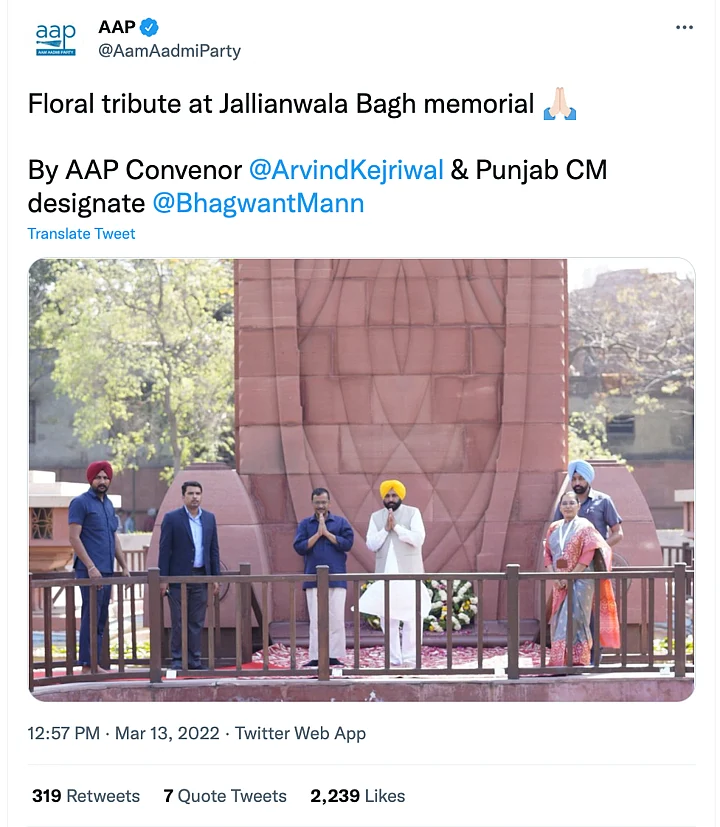 We also came across a tweet with a video of the two paying their respects at the National Martyrs Memorial, which was shared on 16 March 2022. The two visited the memorial after Mann was sworn in as the state’s new chief minister.
