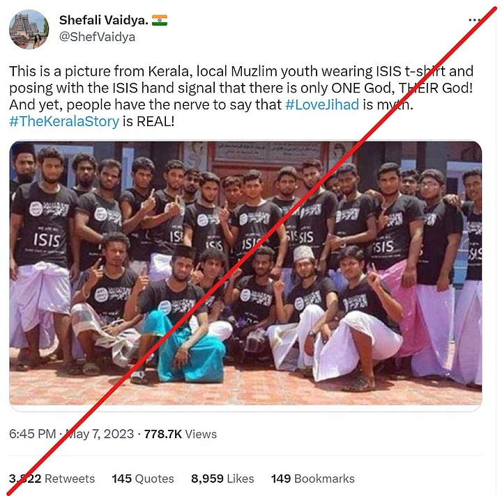 The claim: The tweet claims that these people are from Kerala who are showing their support to the terror organisation Islamic State of Iraq and Syria (ISIS), after the release of the controversial film, The Kerala Story.