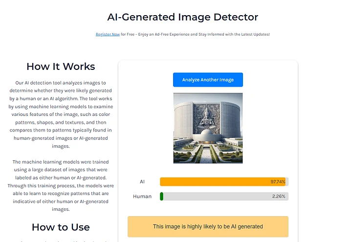 - While the first tool showed a 99.9 percent probability, the second one mentioned over 97 percent chance of the image being an AI-generated image.
