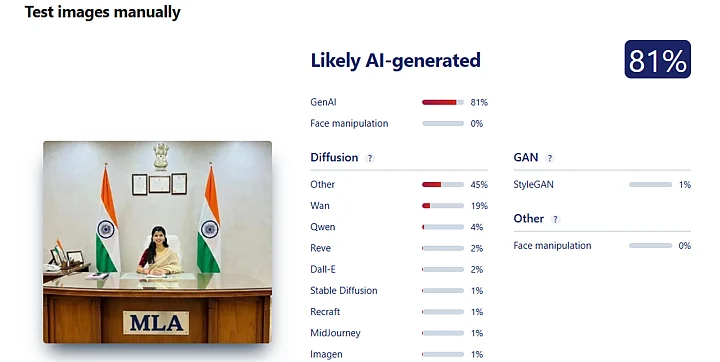 Sightengine was 81 per cent 'likely' that the image was AI-generated while, Was It AI was 'quite confident' about its result.
