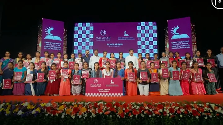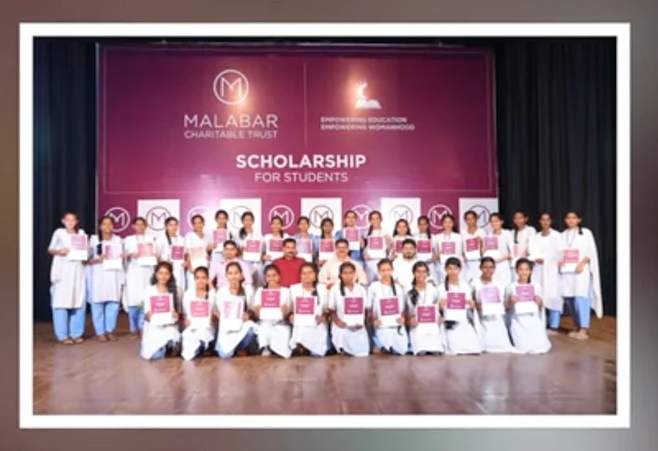 A photograph showing girls donning hijabs and holding up certificates is being shared across social media platforms to claim that the jewellery brand – Malabar Gold and Diamonds – only awards scholarships to girls belonging to the Muslim community.
