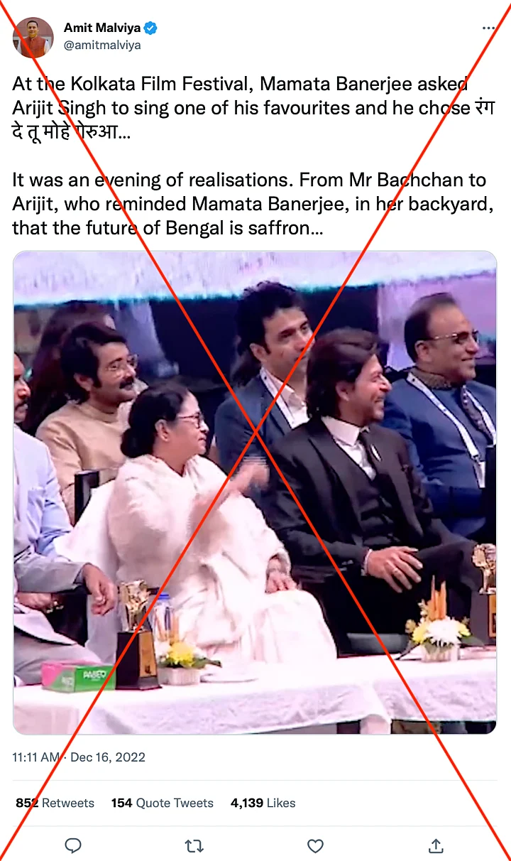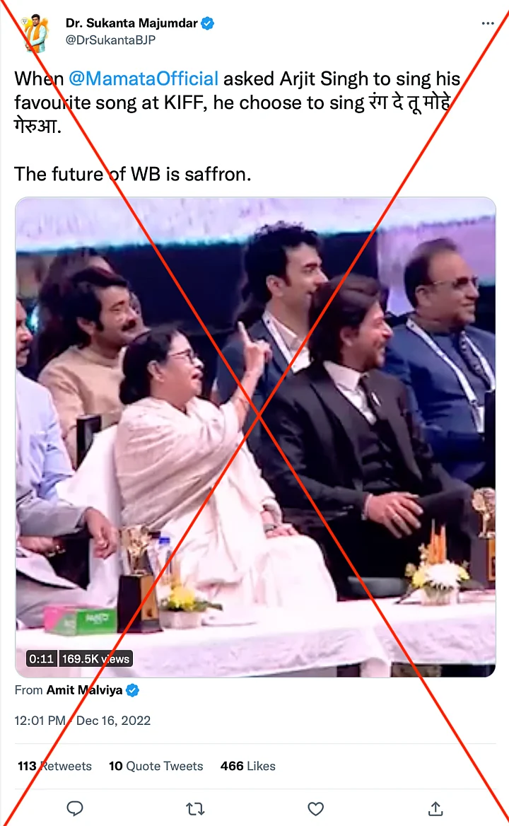 Conclusion: Singer Arijit Singh did not sing 'Gerua' to send a political message to West Bengal Chief Minister Mamata Banerjee. The video is edited, and the original shows him singing 'Gerua' to honour Bollywood actor Shah Rukh Khan.