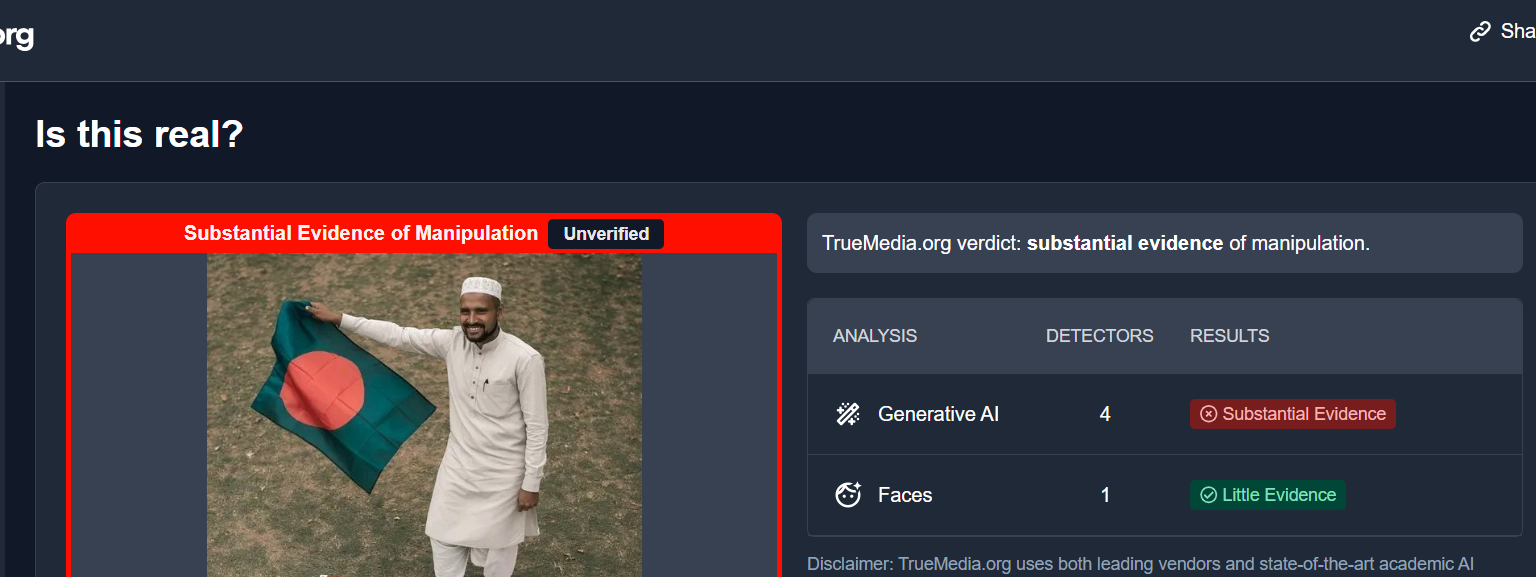 What did detection tools show?: On passing the viral image through two AI detection tools namely — 'Hive Moderation' and 'TrueMedia', both of them showed substantial possibility of the image being generated using the help of AI.