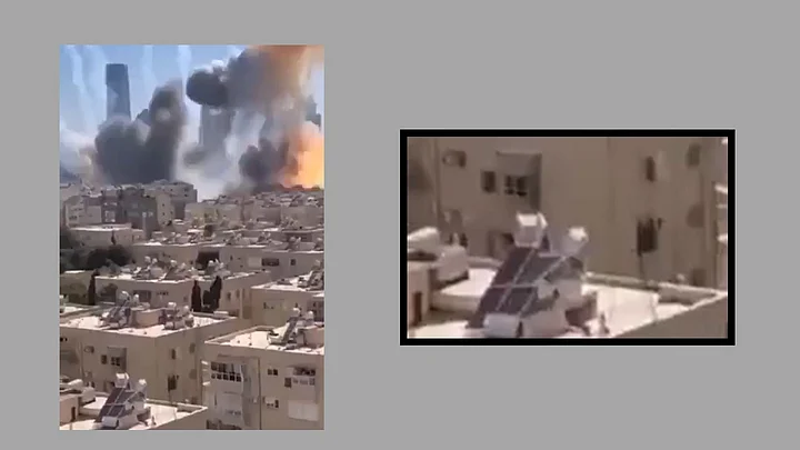A video of a massive explosion taking place in an area is going viral on social media platforms with a claim that it shows recent visuals of Iran's missile attack on Tel Aviv, Israel.