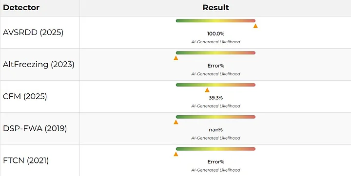 While the second tool gave around 93 percent, one of the detectors of the third showed a conclusive result that the video was indeed AI.