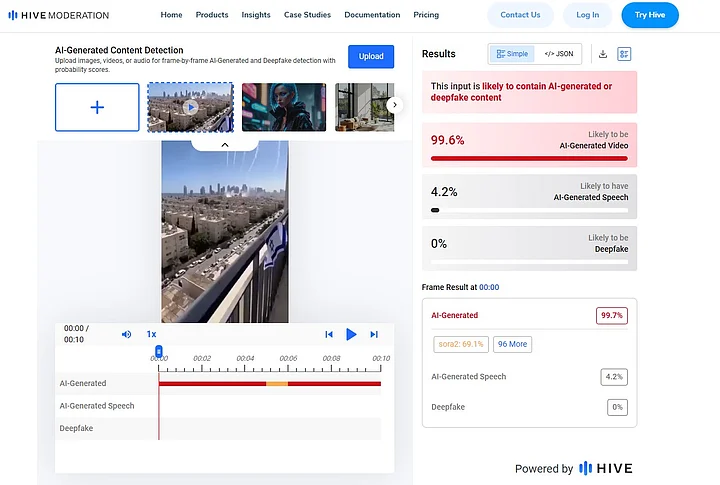 The first tool showed over 99 percent probability of the video being an AI-generated one.
