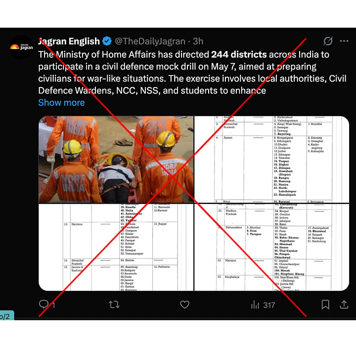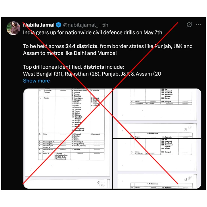 Several media organisations and journalists have shared a document with a claim that it shows the recent list of 244 districts that have been selected for conducting civil defence mock drills on 7 May.