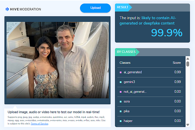 Team WebQoof then ran the image on AI-detection tools such as Hive Moderation and Sightengine which revealed that the image was AI-generated.