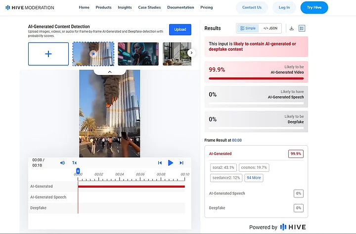 The first tool showed over 99 percent probability of the video being an AI-generated one.