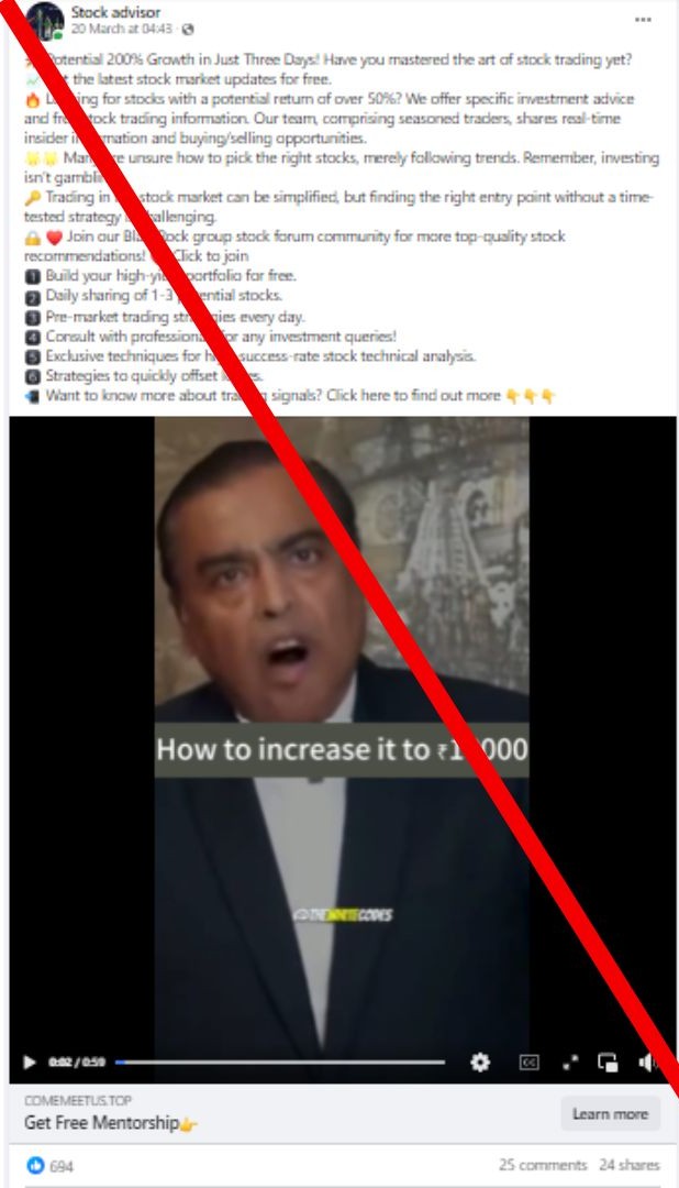 Additionally, we did not find any official statements or press releases to prove that Ambani launched or promoted any stock trading mentorship program.
