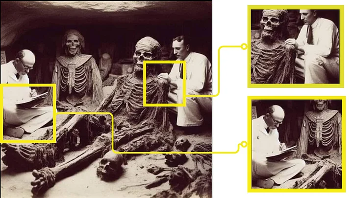Conclusion: These images have been generated using the help of AI tools and do not show the mummies of giant pharaohs.