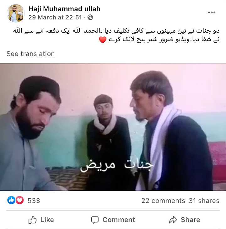 The beginning of this article discussed the contents of the 40-second video, which showed a minor girl crying as “a man (posing as a faith healer) asks her how many jinns have possessed” her, to which she responds in Pashto after which he electrocutes her.