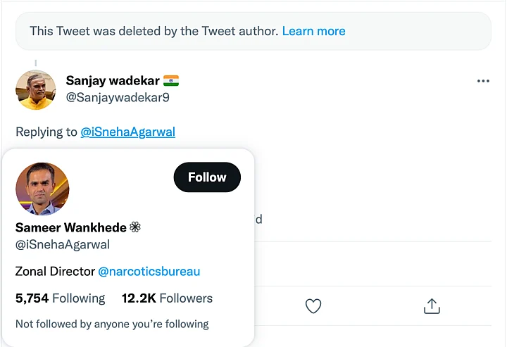 The Quint has reached out to Wankhede to confirm if he has a personal Twitter account and the copy will be updated if and when we get a response from him.
