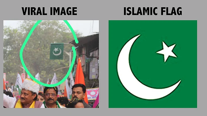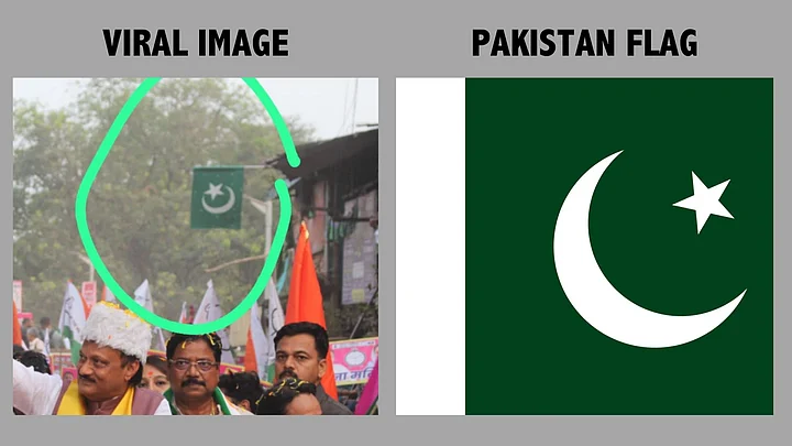 An image of Maharashtra Deputy CM and National Congress Party (NCP) leader Ajit Pawar from a roadshow is being circulated on social media to claim that the green flag seen in the background was the Pakistani flag.