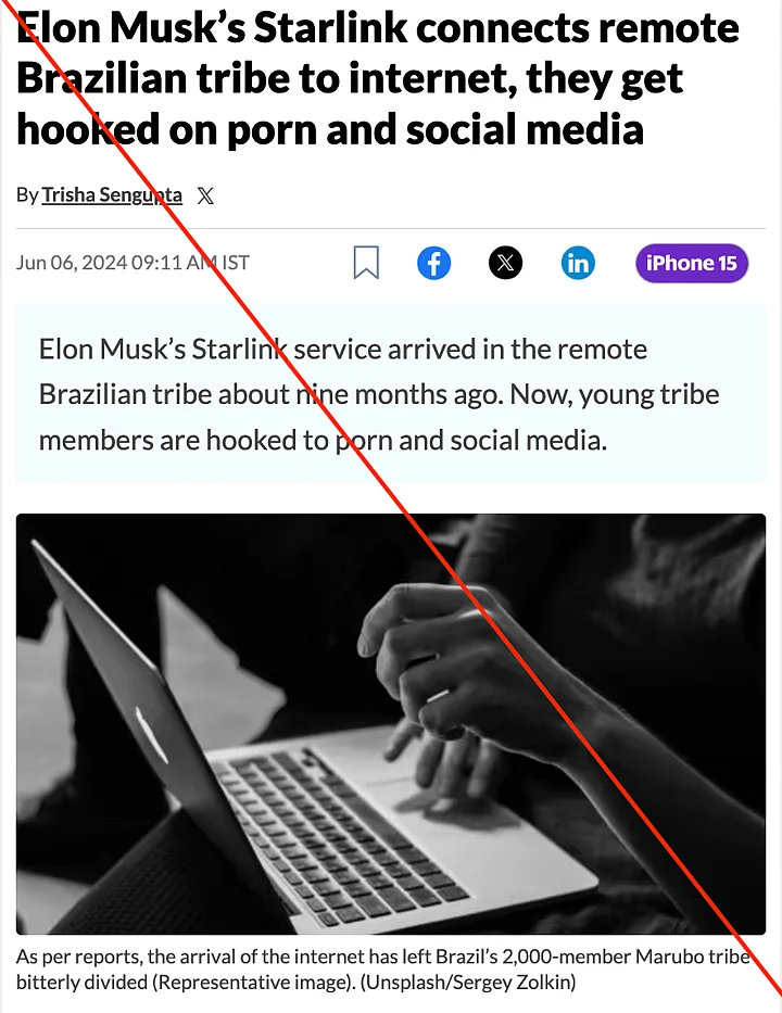 This report, published on 11 June, mentioned that their story about a tribe in Brazil receiving internet "spiraled into its own cautionary tale."