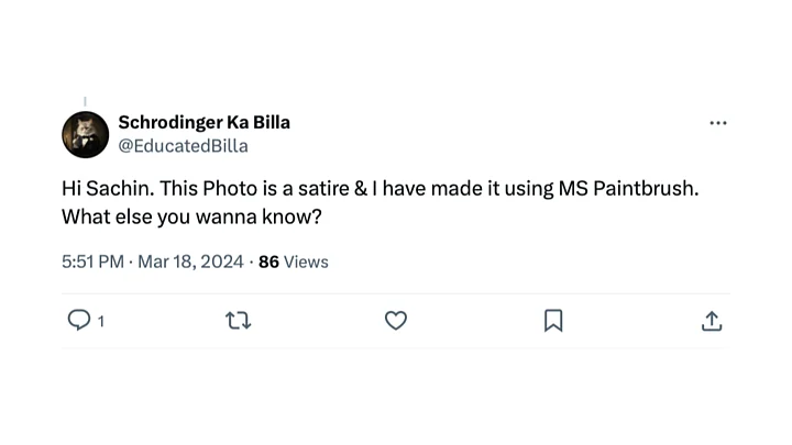 Responding to several user comments, the account clarified that this was "satire" made by them, using Microsoft's Paintbrush application.